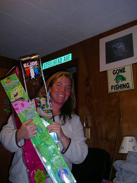 Guilty as charged Sebastes;) The GI Joe rod I had and the Spider Man rod that Parker had were a little longer ... maybe 36-40" or so vs. the 20" or so that the Barbie, Sponge Bob, Scooby-Doo rods were in our boat. Last year, a certain unnamed group with goo tackle ties  found some pretty nice short rods ... so the rules this year simply stated that it must be a cartoon character rod. Didn't matter much, all the reels sucked and actually we had more problems with the reels on the GI & Spidey rods than we did the others. Some of us looked a little harder than others  Next year, we may implement a length limit ... or maybe we won't!