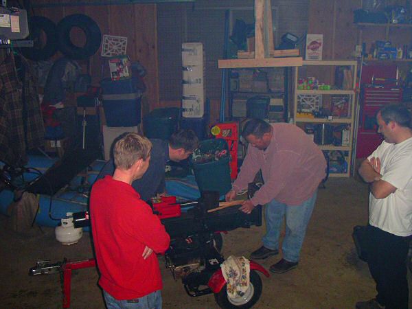 A good time had by all!! Well, maybe for except Sol_on_the_Duc My mission was accomplished ... returning that green sweater back to our household where it's now been been 3 out of the 4 past years! And yes, we got mission #2 taken care of ... the first-ever full limit of fish on Snoopy Rods. We ended up 6 for 12 or so ... reel malfunctions and combat netting takes its toll! I'll add a few more pictures of the events: Corey prepping the night before ... A close-up look at some of the high-end equipment that we used ... Brian, Kent, and Kev (Parker was smart enough only to watch and laugh) of people with way too much to drink operating heavy equipment ... saturating my gargage with exhaust fumes. Cutting kinding for that after-fishing fire with a log-splitter? You know these guys are from the city! Corey's secret weapon, the Barbie tackle pouch ... Rod and Brain got a few stares and a very cold ride at the end of the day in the bed of the truck doing turn-arounds ... And let's see a clsoer look of Sol_on_the_duc getting his moniker changed to Duc_on_the_Bogey with a poato warning **** to stay away!!!!!!!!!!!!!! Of course, we follwed the day up with a Mexi-fest at Plaza Jalisco ... a little overwheled they were with us all coming in a big group, but a hot dinner (and a few maragaritas for most of course) was a nice finish to another awesome round of SRC! Looking forward to '05. I'm sure some of the other fellas have some more pix to share, let's see 'em guys since we ran off and hid on y'all for a few hours!