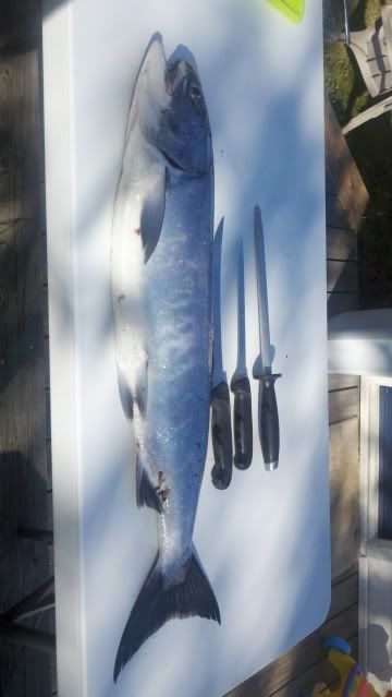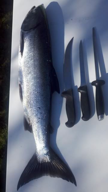 I have a 12 inch Forschner Cimiter and for fish >8 pounds, there is no better knife IMO. The granton edge reduces suction from the flesh to the blade, and the weight and sharpness allow you to break right through rib bones and maintain a straight, even fillet cut. OTOH, it is kind of a worthless knife for those that butterfly fillet all their fish, regardless of size. Also seems a bit big and clumsy for the surgeons in our group that like to "operate" on their fish and take it apart chunk by chunk!  I just don't see Doc liking that knife for how he chooses to hack on his fish. I could be wrong on that. As F4B pointed out, the folding Kershaw is the "go to" knife for that application. It holds a good edge, it can be folded up for easily packing/travel and even has a little fold out blood line scooper thing. Oh, and they are cheap. I have 6 of them....and buy a couple every time I'm up at Trusty Hardware in Soldotna. On sale, they are about $10 each. I'd let the style of how one prefer's to fillet their fish dictate what knife to use. As always, one's results may very depending on what they are doing. I have seen that knife in action by Bucket on a 4-million pound prime rib (or whatever slab it was)! Seemed to do an awesome job on big old slabs of meeeeeet! I could use one of those......as I love knives..especially good ones.