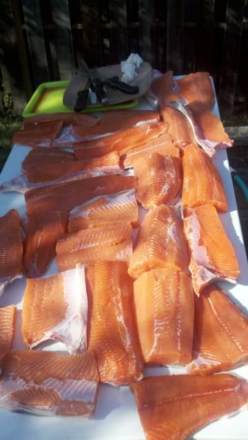 I have a 12 inch Forschner Cimiter and for fish >8 pounds, there is no better knife IMO. The granton edge reduces suction from the flesh to the blade, and the weight and sharpness allow you to break right through rib bones and maintain a straight, even fillet cut. I prefer to use a smaller fillet knife for smaller fish because the blade is overkill on a small or skinny fillet like a hatchery steelie.... a shorter smaller blade simply suits the job better on the little ones IMO.