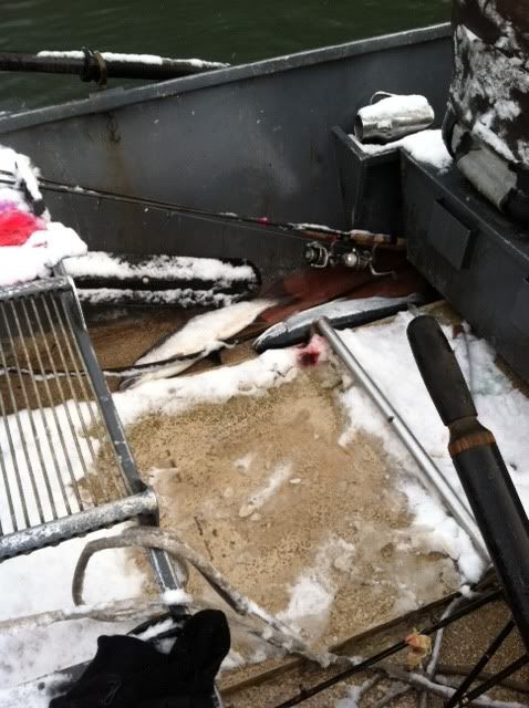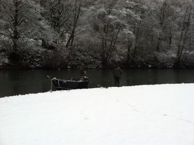 The weather was challenging to fish in. It was snowing off and on all morning and we probably had another two inches fall on us early.