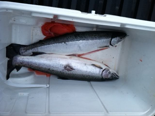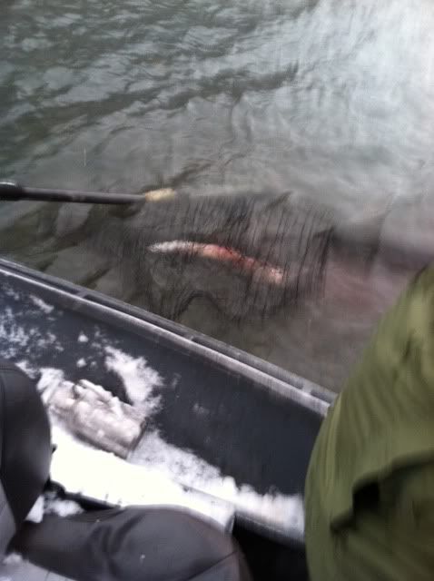 We got rigged up with side drifting gear and I was able to get into a bright hatchery buck at the "car body hole". You guys should take better care of your rivers up there and not dump cars into them...