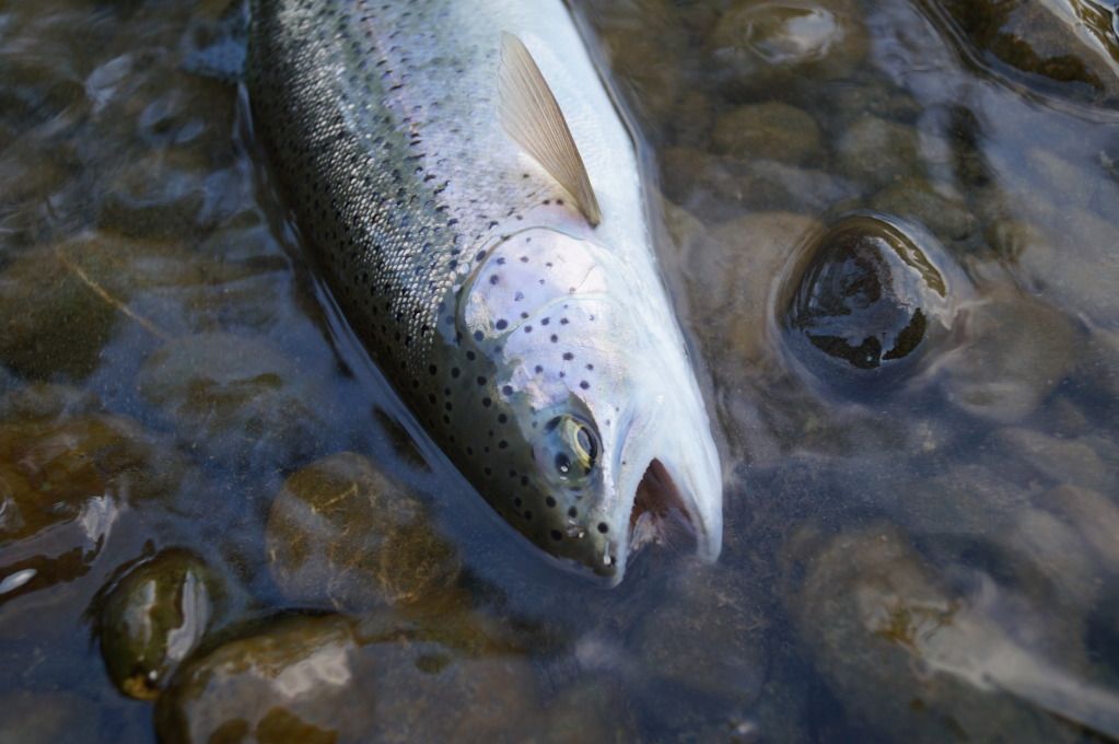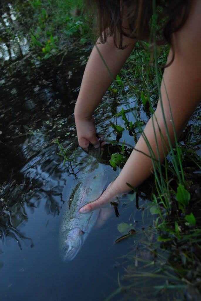 Felt like getting in touch with my ascot wearin' scotch drinkin' self and did a little flyfishing the other day. Rewarded with a respectable 14" 'bow on a #12 stimulator and a few others.