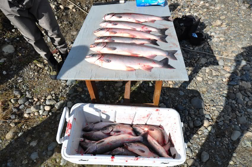 Cut gills, toss in box  or cooler  repeat as needed. As for fish caring about blood in the water, the thought never really occurred to me, and I definitely haven't noticed a correlation to a drop off in the bite. By the way Doc, I gave the Stam shotgun method a try a few times on sockeye this year and man does that do a good job of bleeding them out quickly. However, you have to be a little more delicate with the tail when filleting, as the strength is greatly reduced. I tore a few off before I learned my lesson